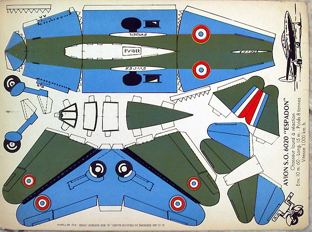 Modèle simplifié du prototype de chasse à réaction qui vola en 1950. Cette planche semble avoir été éditée à peu près à la même époque.