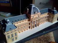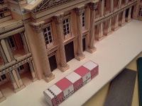The Military Academy in Paris. Typical building from the french architect Gabriel (1752). Cardmodel published in 1988. 12p. book A4 with 168 parts on 8 pages. Scale 1/250. Length of he model: 40cm. Assembly instructions by drawings. Architectural model with only one uniform stone color but very nice looking. |