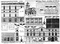 Construction à l'échelle 1/2 de la planche originale. Le modèle ainsi obtenu est assez élégant mais simplifié par rapport au bâtiment réel. La galerie sous colonnade est représentée. Les détails architecturaux de la tour sont omis. L'échelle résultante doit être 1/350ème.